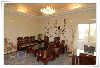 星月灣民宿一樓的大廳,非常有特色的桌子